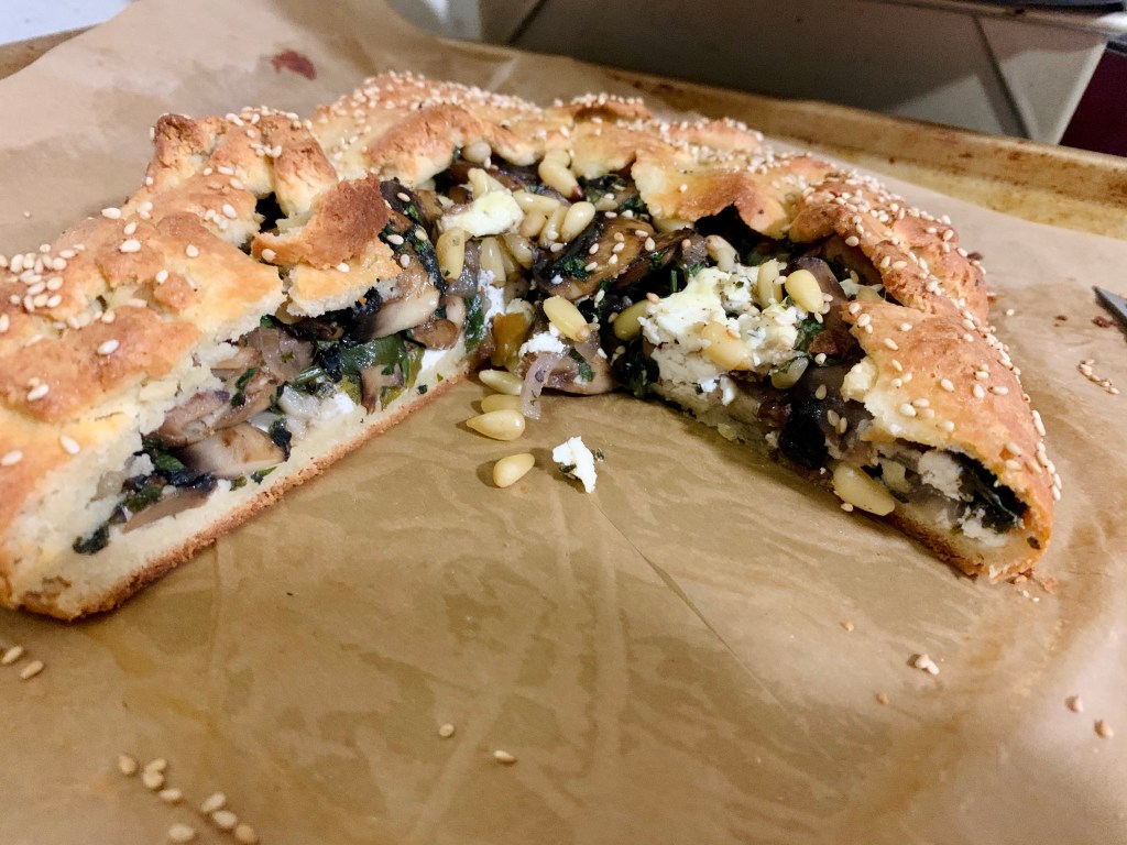 I made the loveliest of savory galettes last night as a side dish for dinner using my almond flour pastry dough. I used portobello mushrooms, lovely purslane, shallots & garlic, truffle goat cheese & pine nuts. I mean who says that keto has to be boring! I felt like I was having a gourmet meal.
