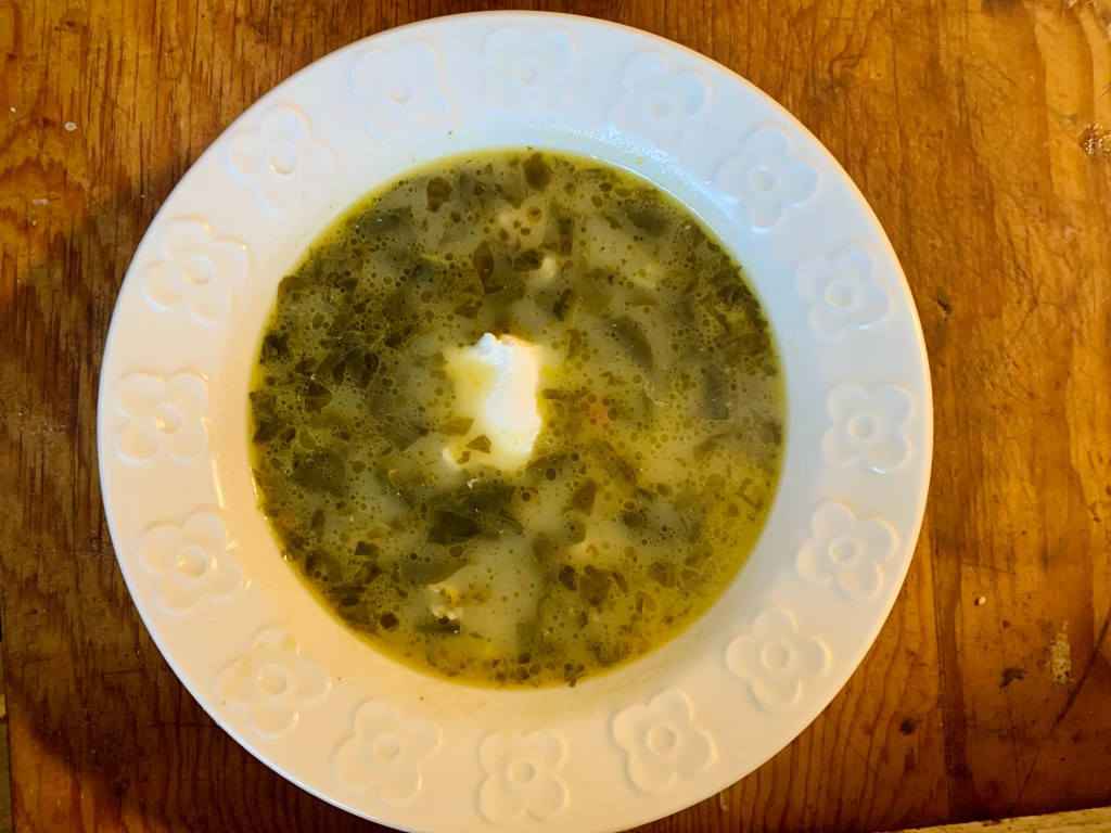 In the meantime, chop up your spinach, parsley, dill, mint and scallions. Grate your garlic. Add them to the soup.