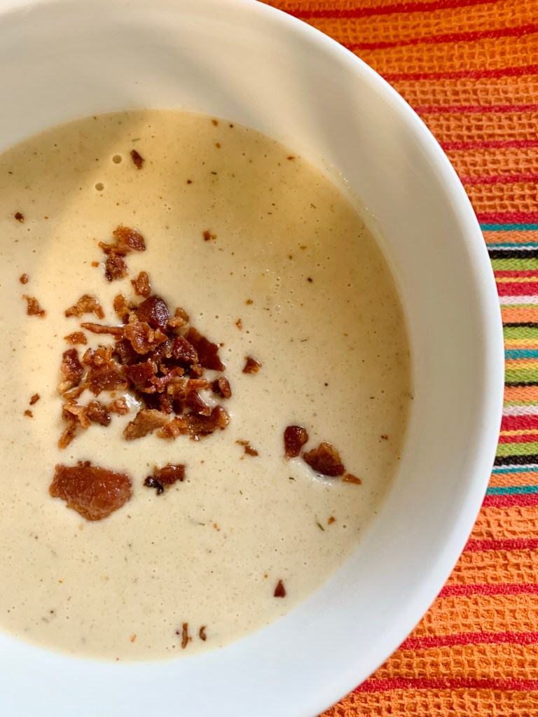 My beautiful friend Elainee gave me this brilliant idea for this hearty soup today. She had tried a fennel consommé and my wheels began to turn because I had some bone broth I wanted to use up and a head of cauliflower. So I went to the market and picked up fennel and shallots, and the inspiration for this very tasty soup was born.