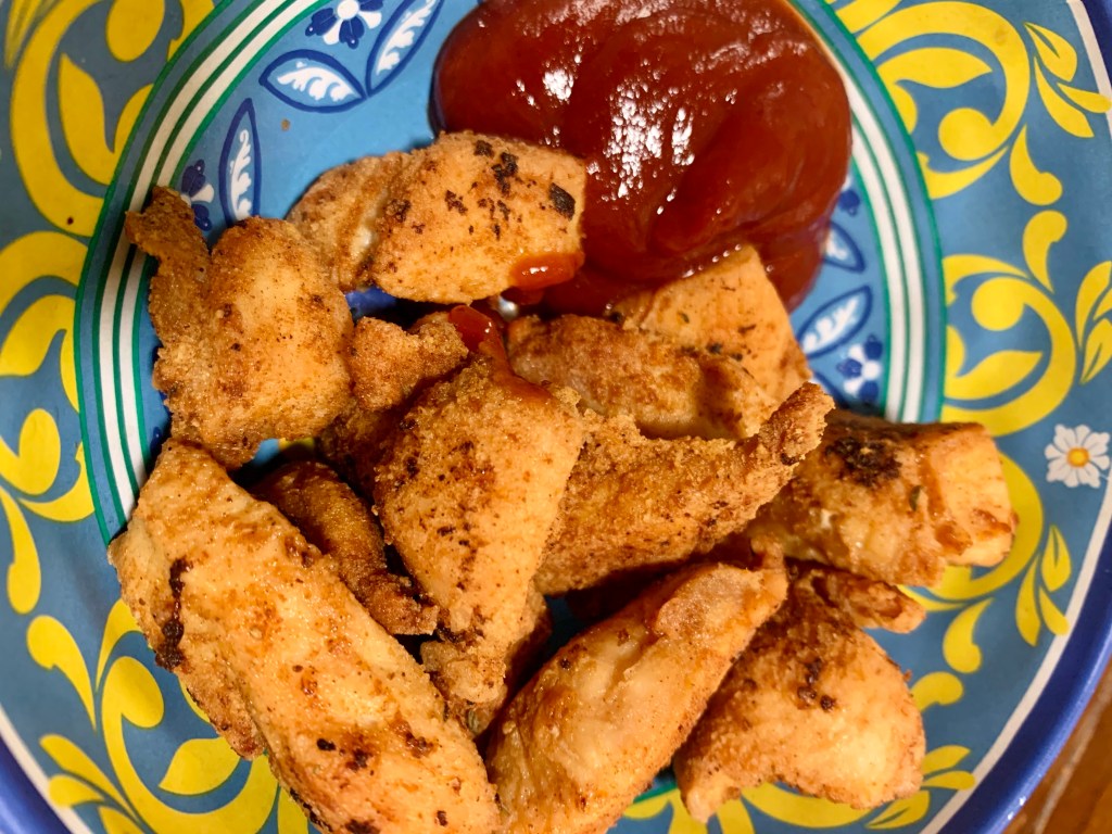 One of my favorite things that my mother used to make when we were kids was her famous chicken nuggets. No, they weren’t like the McDonald’s or other fast food kind. These were so much better! And we loved them with ketchup!