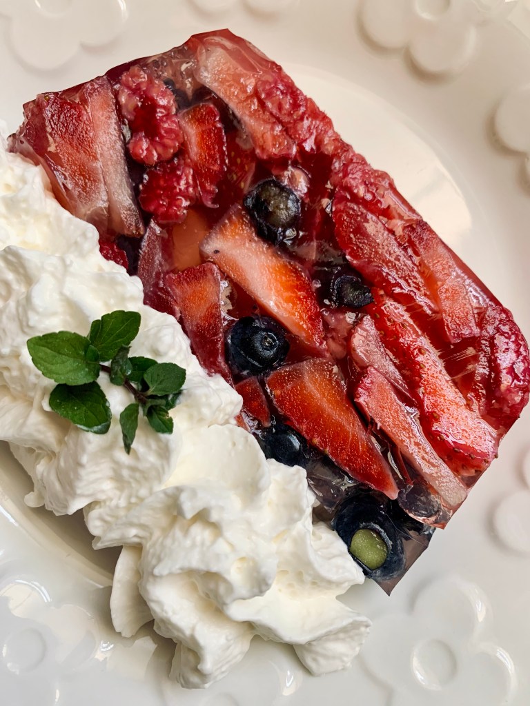 This summer berry terrine is perfect for those hot days of summer! Light and refreshing. What is rather awesome is that I found a way to make this sugar free without adding any alternative sweeteners. How you might ask? The liquid to make the jello is made with coconut water, which is already naturally sweet, refreshing and actually pretty darn full of beneficial electrolytes and potassium. So yes, I made a beautiful dessert that is actually great for your body! (patting myself on the back for this one)