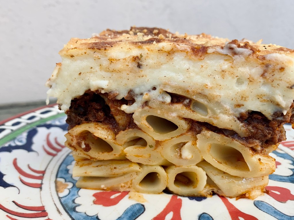 Have you ever had pastitsio? The famous Greek pasta bake? The one that is layered with pasta, a cinnamon fragranced meat sauce, and a thick layer of creamy bechamel? You know the one that every Greek swears that their mother or yiayia make the most amazing one ever? Yes! That’s the one!