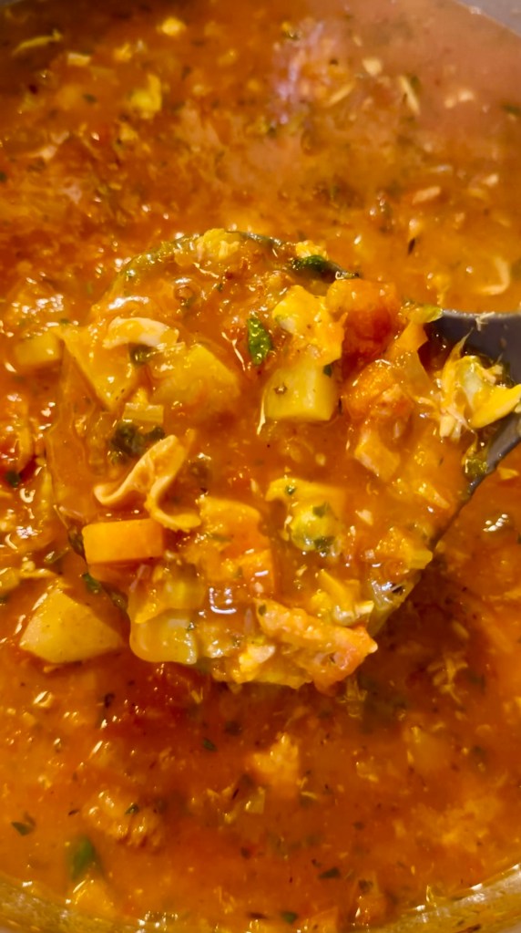 A good friend asked me to make it, so I played with the recipe and made this HUGE stock pot worth of Manhattan clam chowder for him to share with his family.