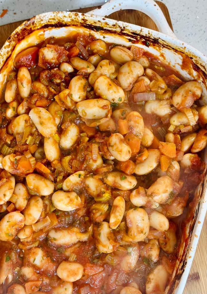 Gigantes Plaki. These are the famous Greek baked beans. The ultimate in Greek comfort food! We eat them all year long, and they are perfect as a side dish or the main course.